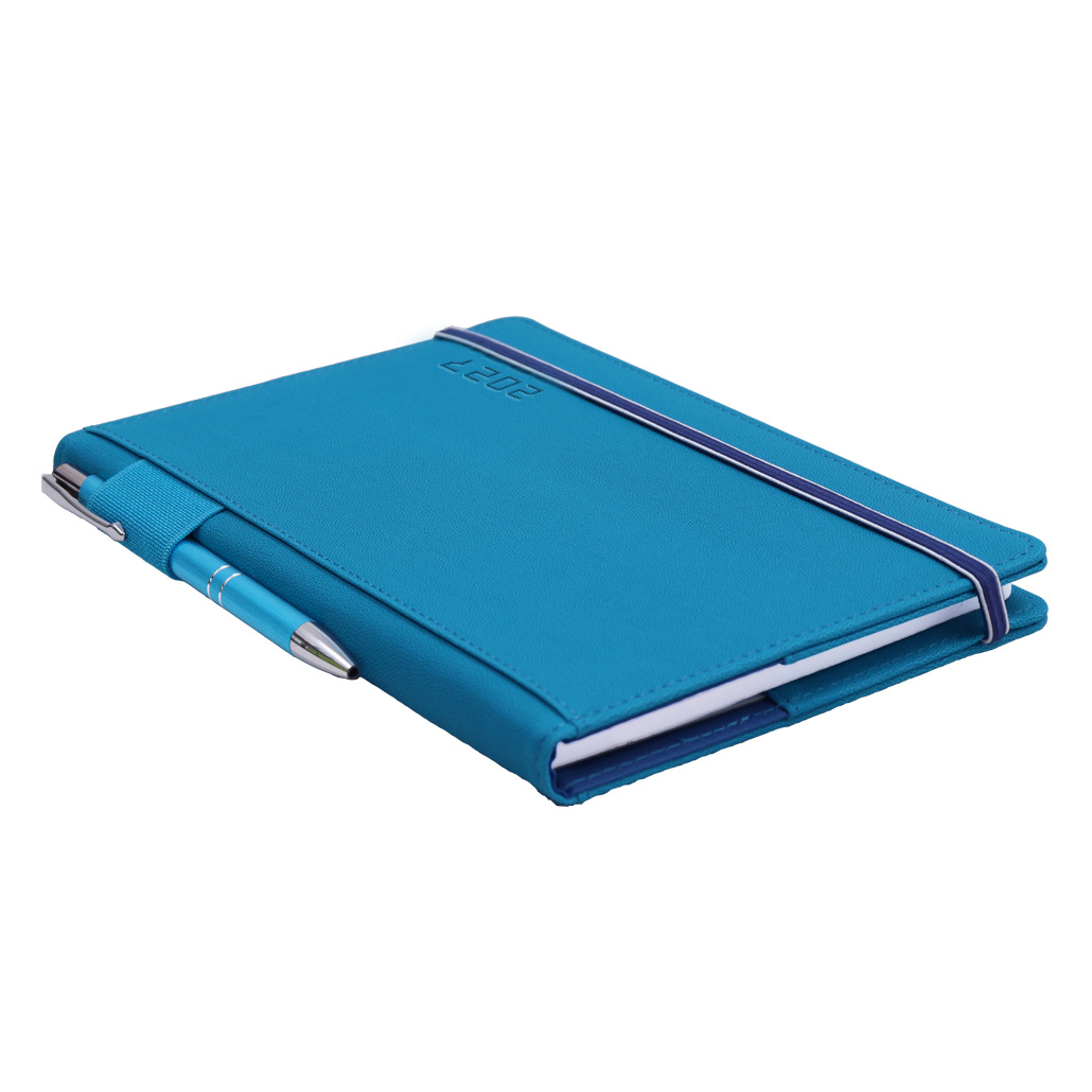Kalendarz książkowy AMOS tygodniowy z notesem A5 2027 CZ/SK - niebieski/granatowa gumka