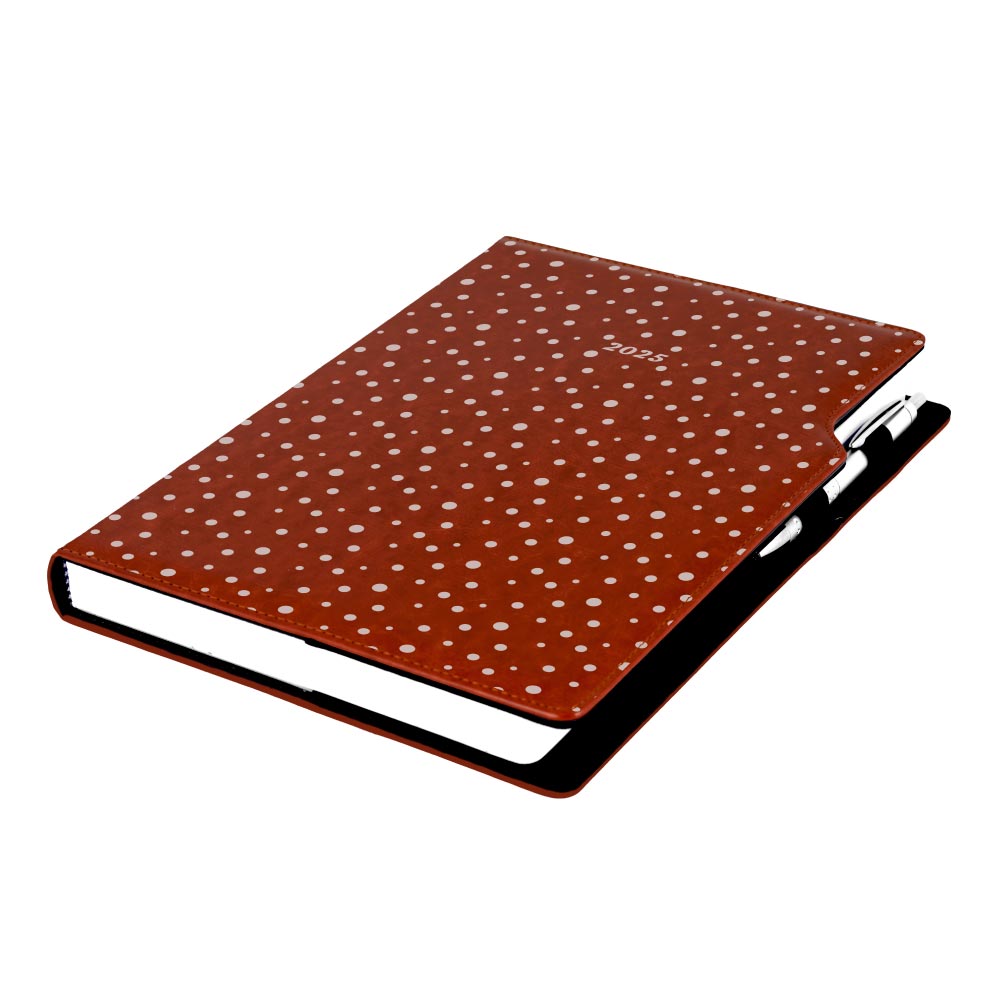 Kalendarz książkowy DESIGN dzienny A4 2025 polski - brązowy - kropki