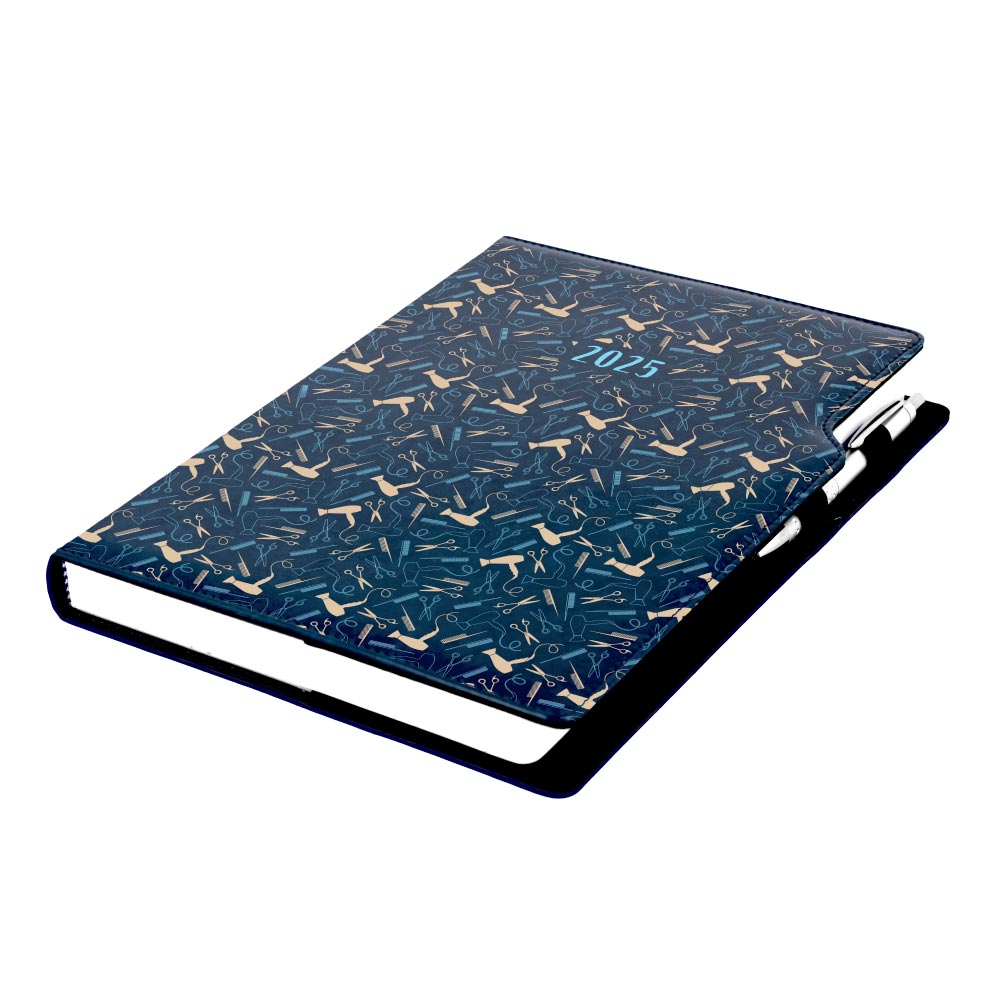 Kalendarz książkowy DESIGN dzienny A4 2025 polski - granatowy - Fryzjer