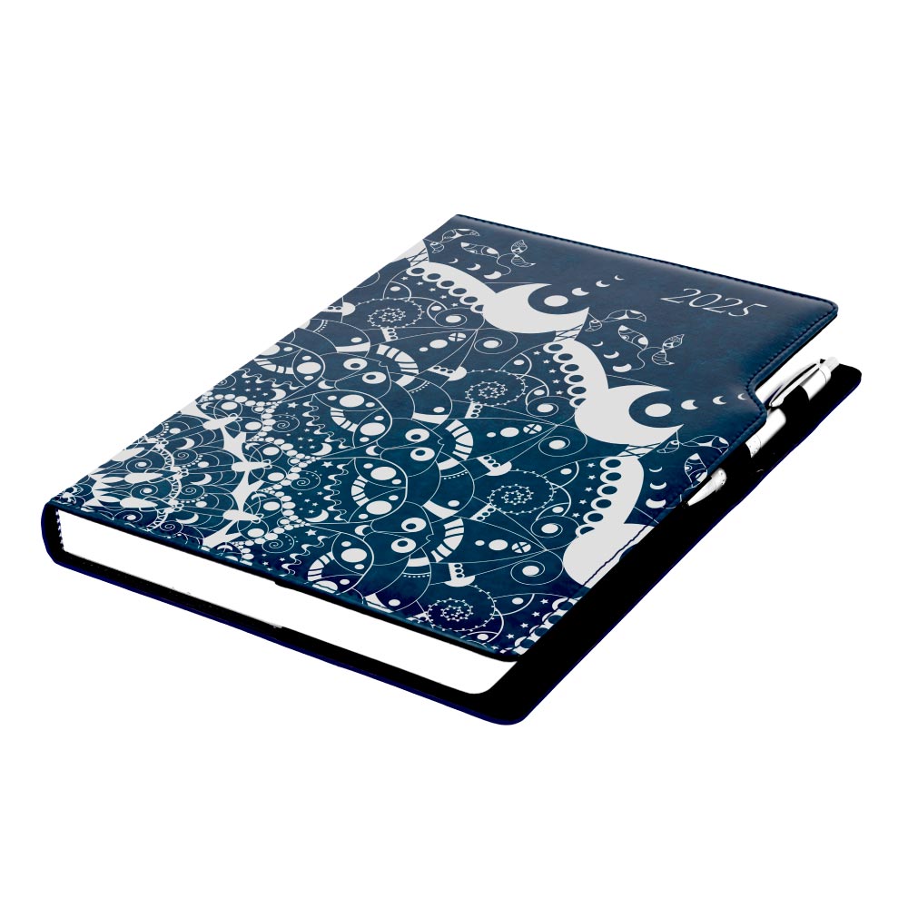 Kalendarz książkowy DESIGN dzienny A4 2025 polski - granatowy - ornament