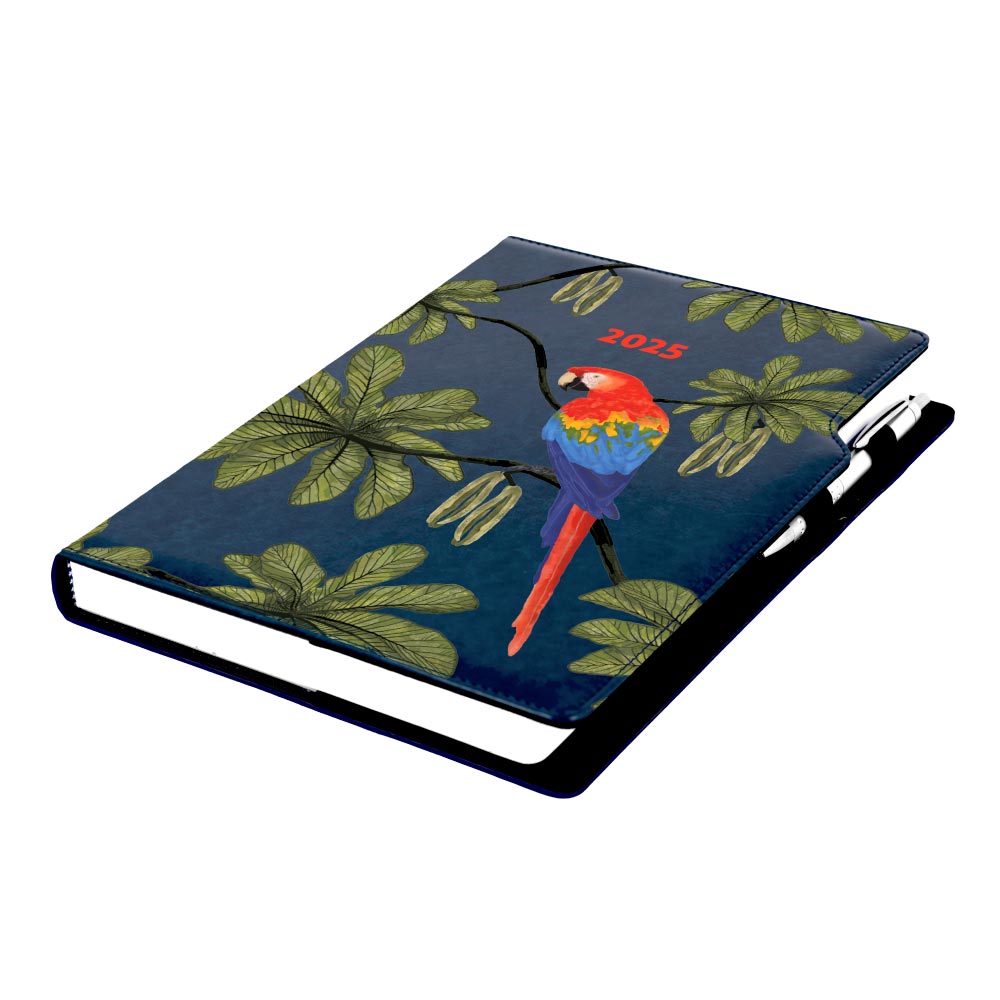 Kalendarz książkowy DESIGN dzienny A4 2025 polski - granatowy - papuga