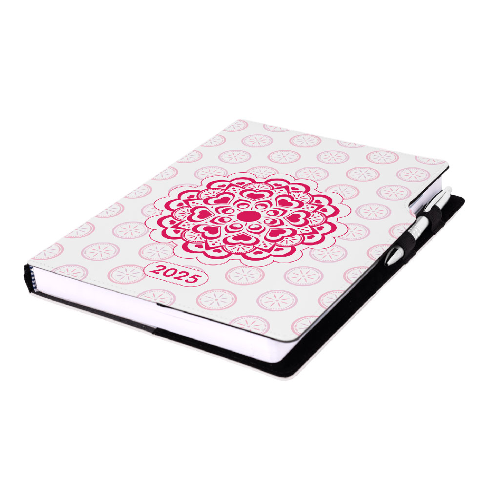 Kalendarz książkowy DESIGN dzienny A4 2025 polski - Mandala czerwona