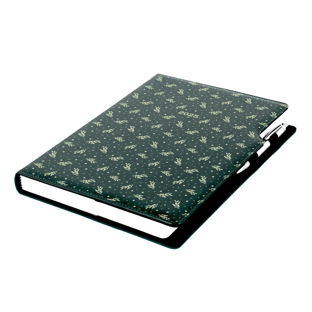 Kalendarz książkowy DESIGN dzienny A4 2025 - zielony - gałązki