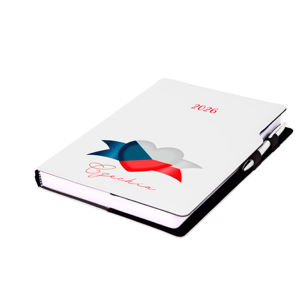Kalendarz książkowy DESIGN dzienny A4 2026- biały - Czeska - flaga