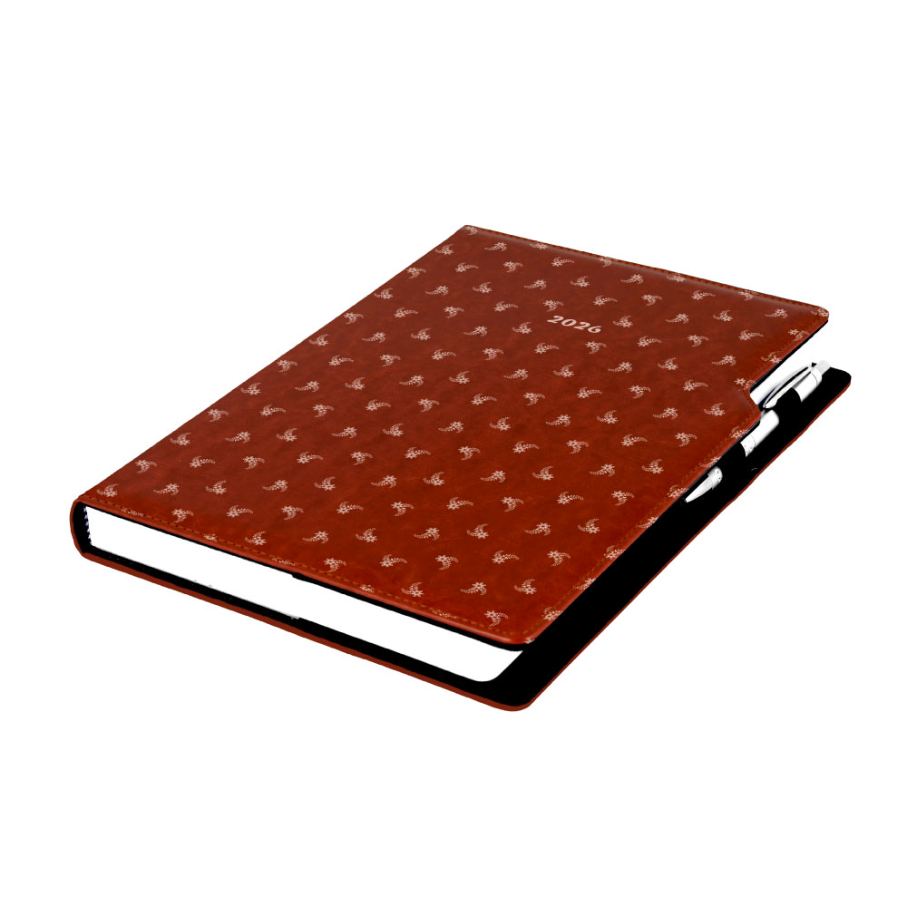 Kalendarz książkowy DESIGN dzienny A4 2026- brązowy - biały kwiat