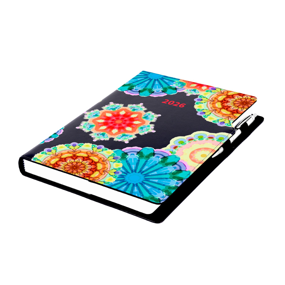 Kalendarz książkowy DESIGN dzienny A4 2026 - czarny - kalejdoskop