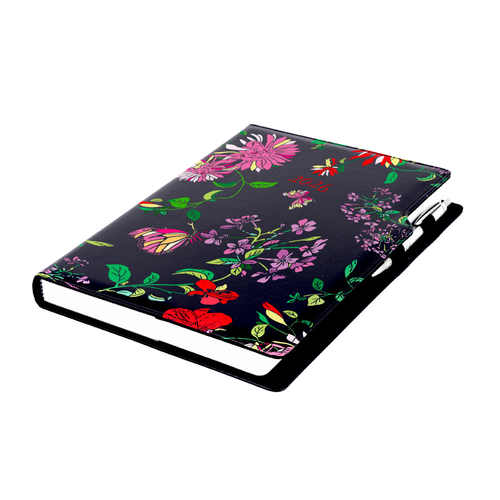 Kalendarz książkowy DESIGN dzienny A4 2026 - czarny - kwiaty