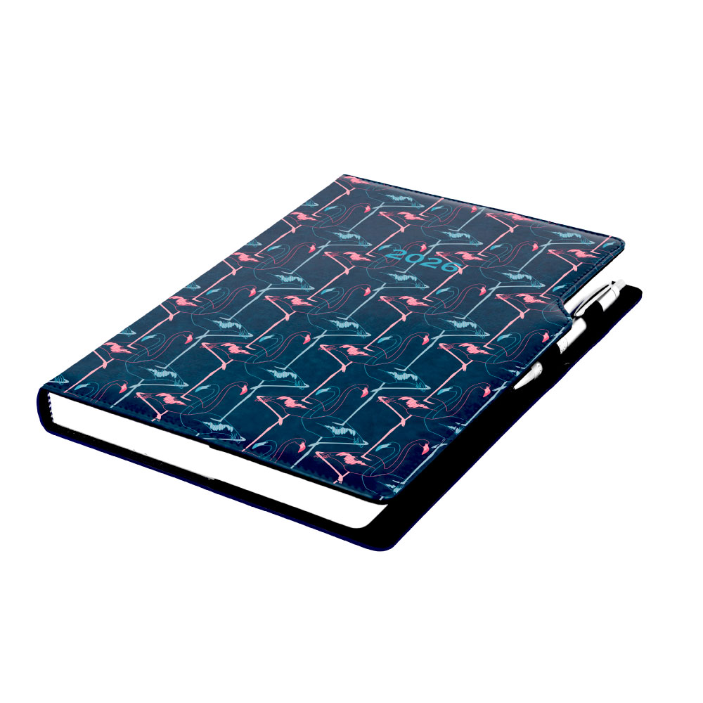 Kalendarz książkowy DESIGN dzienny A4 2026- granatowy - Flamingo