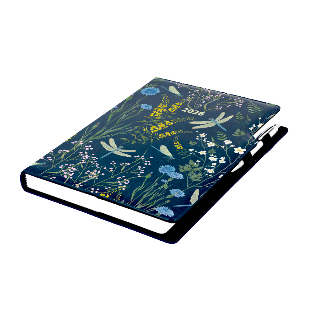 Kalendarz książkowy DESIGN dzienny A4 2026 - niebieski - ważki