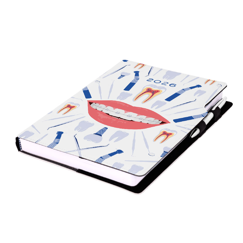 Kalendarz książkowy DESIGN dzienny A4 2026 polski - biały - Dentysta