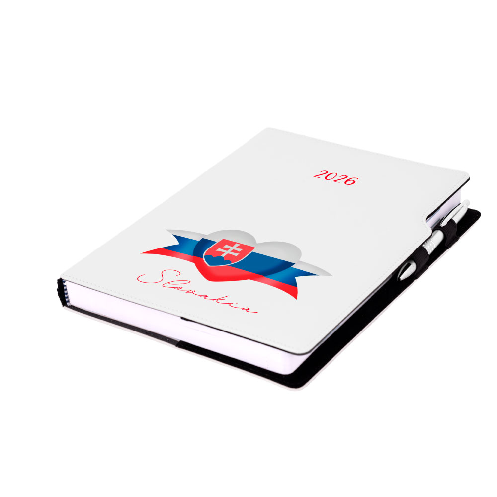 Kalendarz książkowy DESIGN dzienny A4 2026 polski - biały - Słowacja - flaga