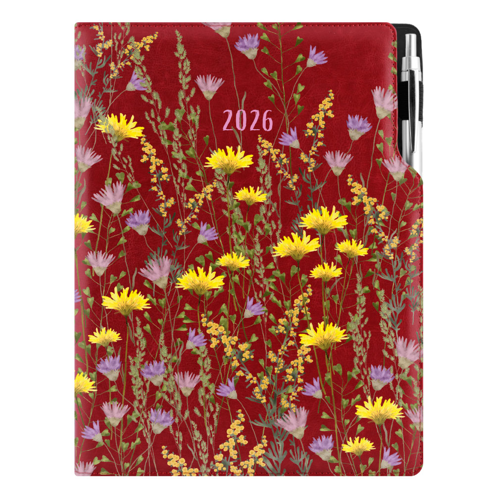 Kalendarz książkowy DESIGN dzienny A4 2026 polski - bordowy - Łąka