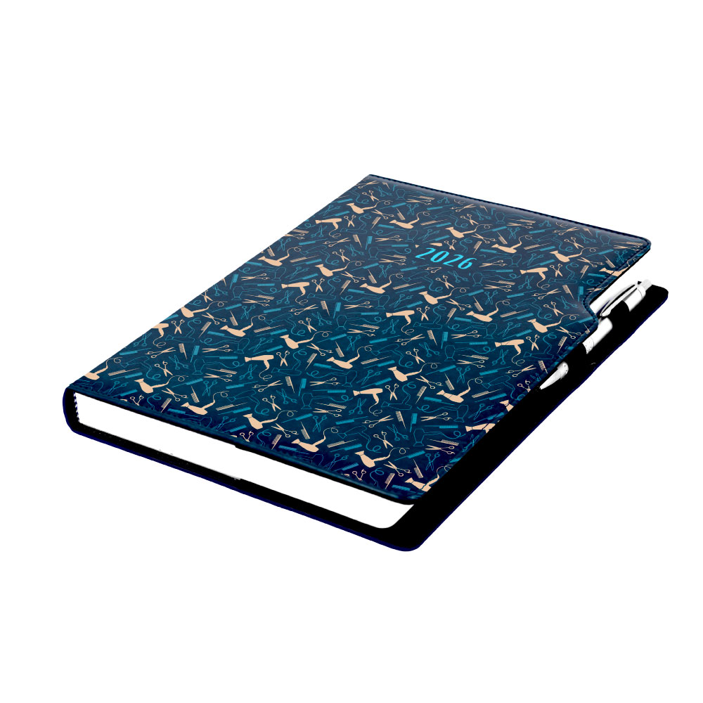 Kalendarz książkowy DESIGN dzienny A4 2026 polski - granatowy - Fryzjer