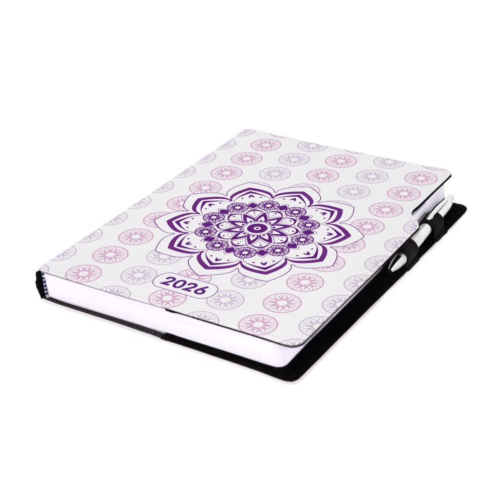 Kalendarz książkowy DESIGN dzienny A4 2026 polski - Mandala fioletowa