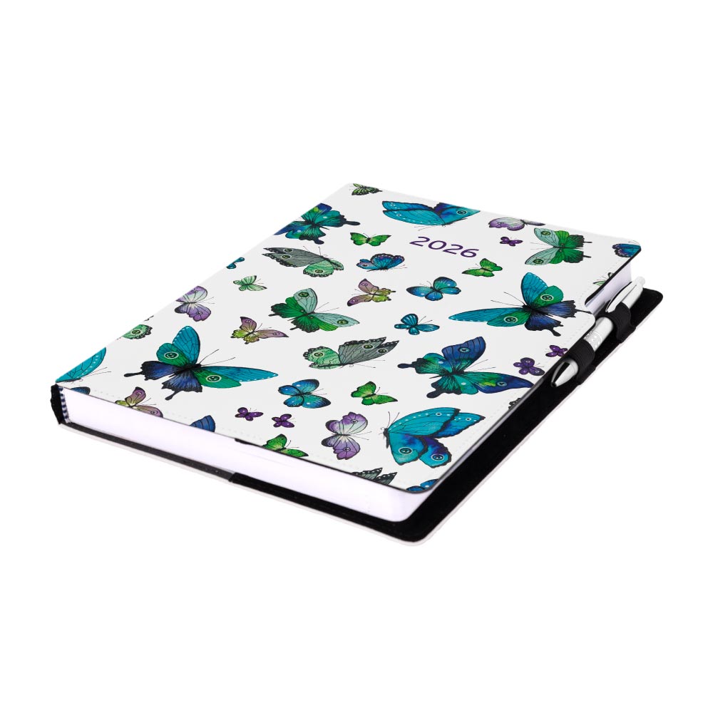 Kalendarz książkowy DESIGN dzienny A4 2026 polski - Niebieskie motyle