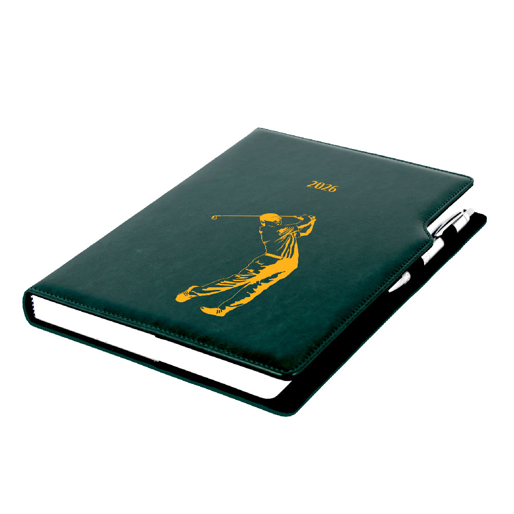 Kalendarz książkowy DESIGN dzienny A4 2026 polski - zielony - Golf mężczyźni