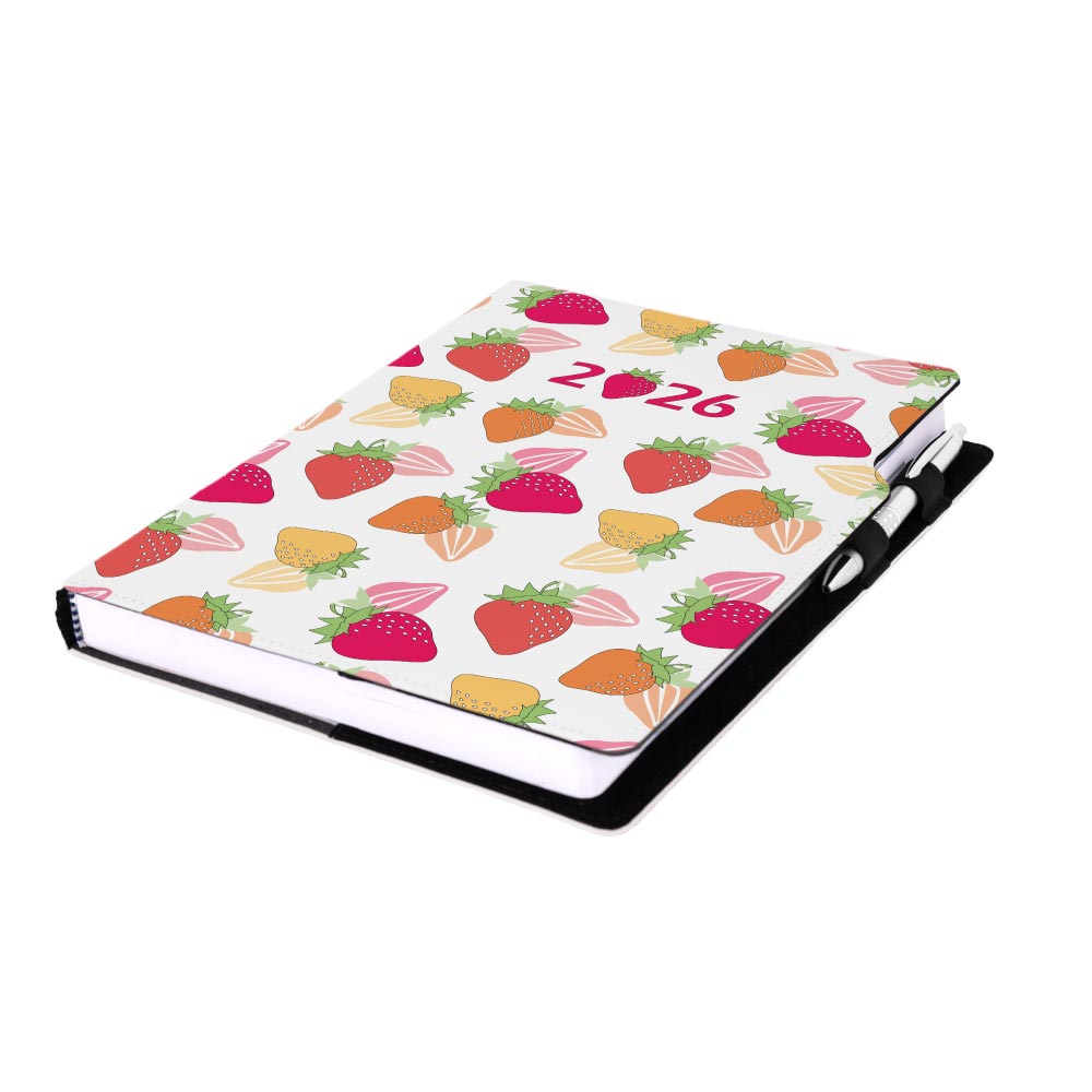 Kalendarz książkowy DESIGN dzienny A4 2026 - Truskawka