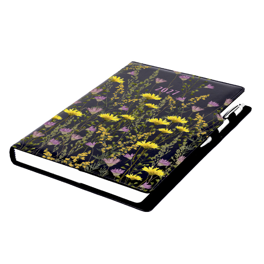 Kalendarz książkowy DESIGN dzienny A4 2027- czarny - łąka