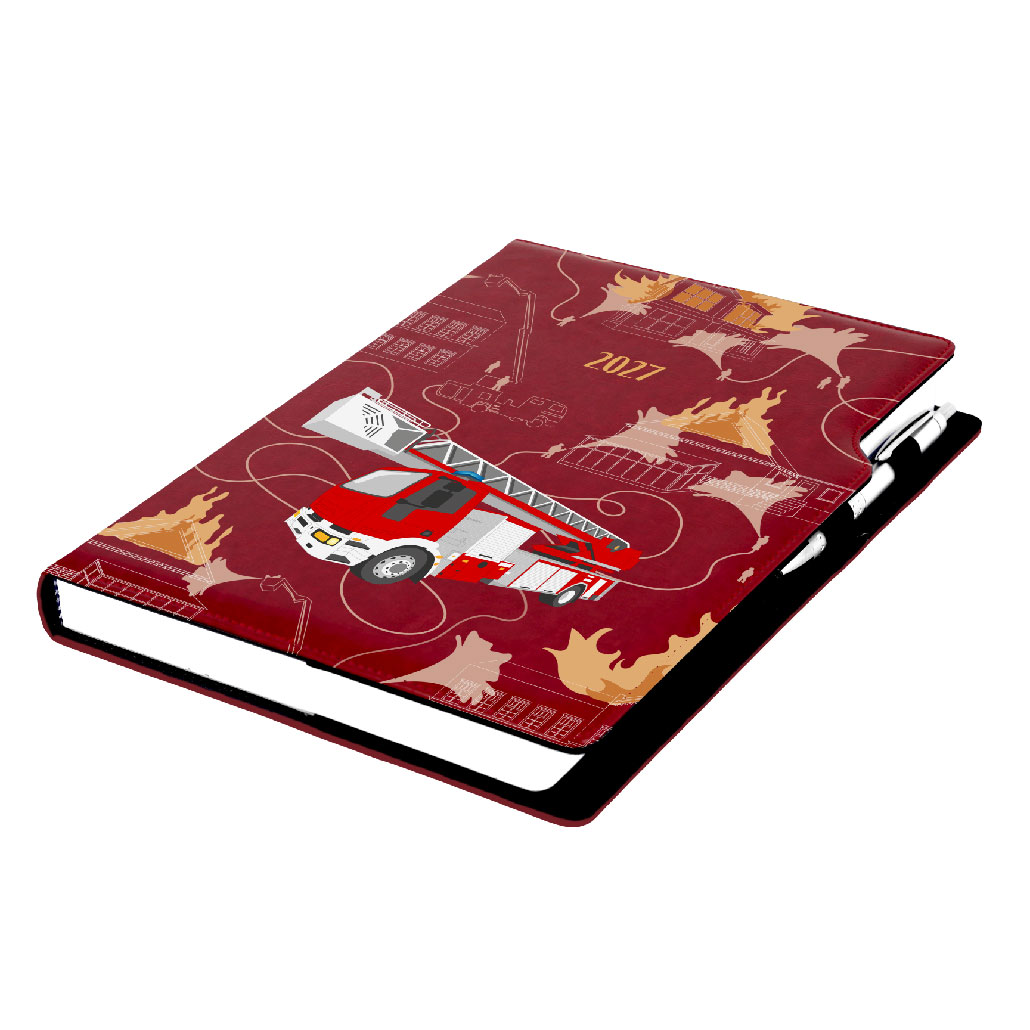 Kalendarz książkowy DESIGN dzienny A4 2027 czeski - bordo - Straż