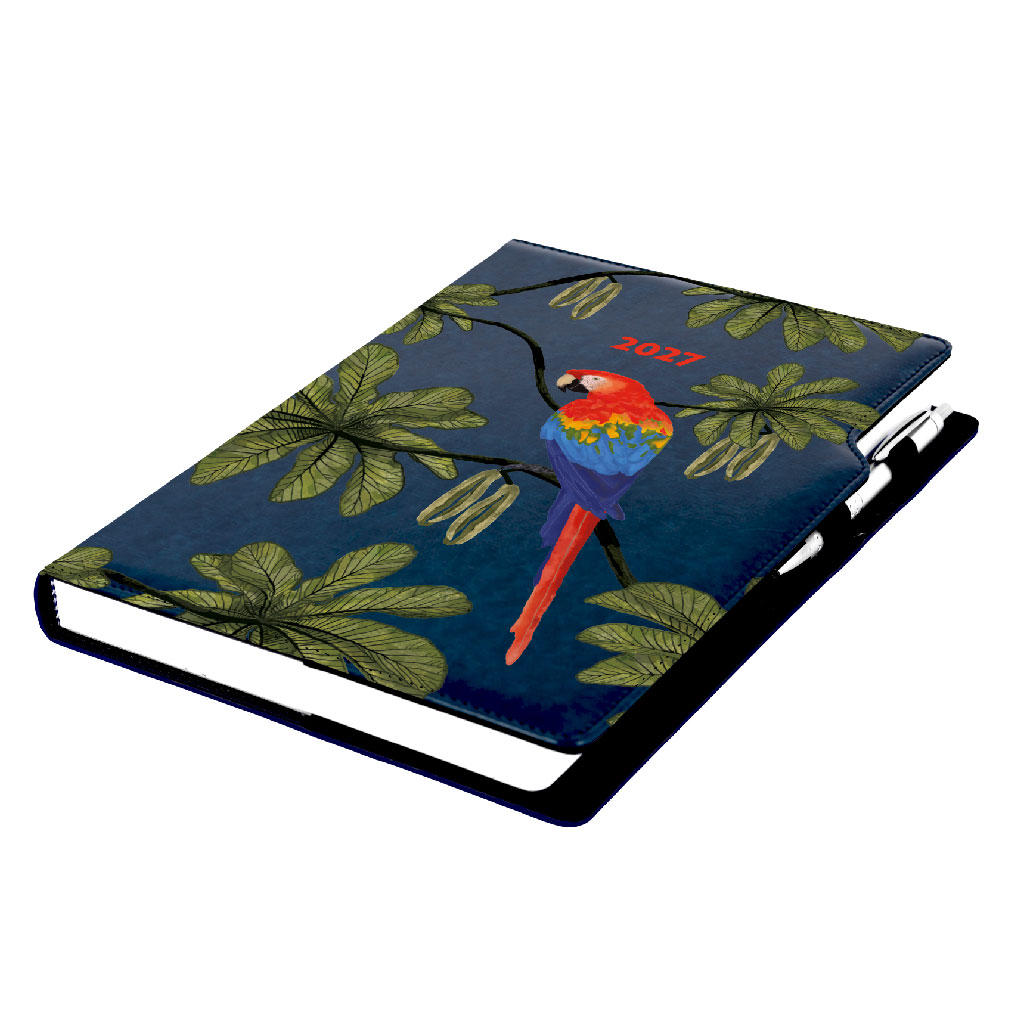 Kalendarz książkowy DESIGN dzienny A4 2027- granatowy - papuga