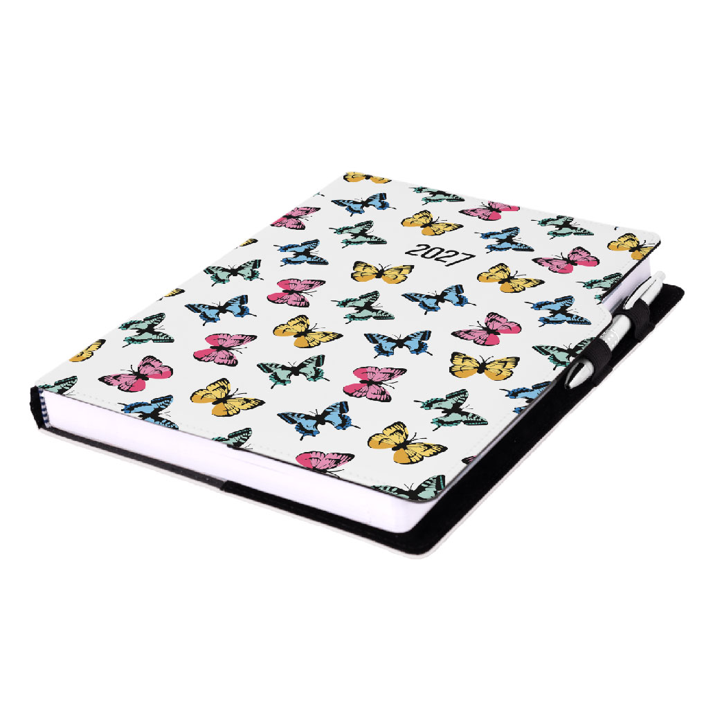 Kalendarz książkowy DESIGN dzienny A4 2027 - Kolorowe motyle