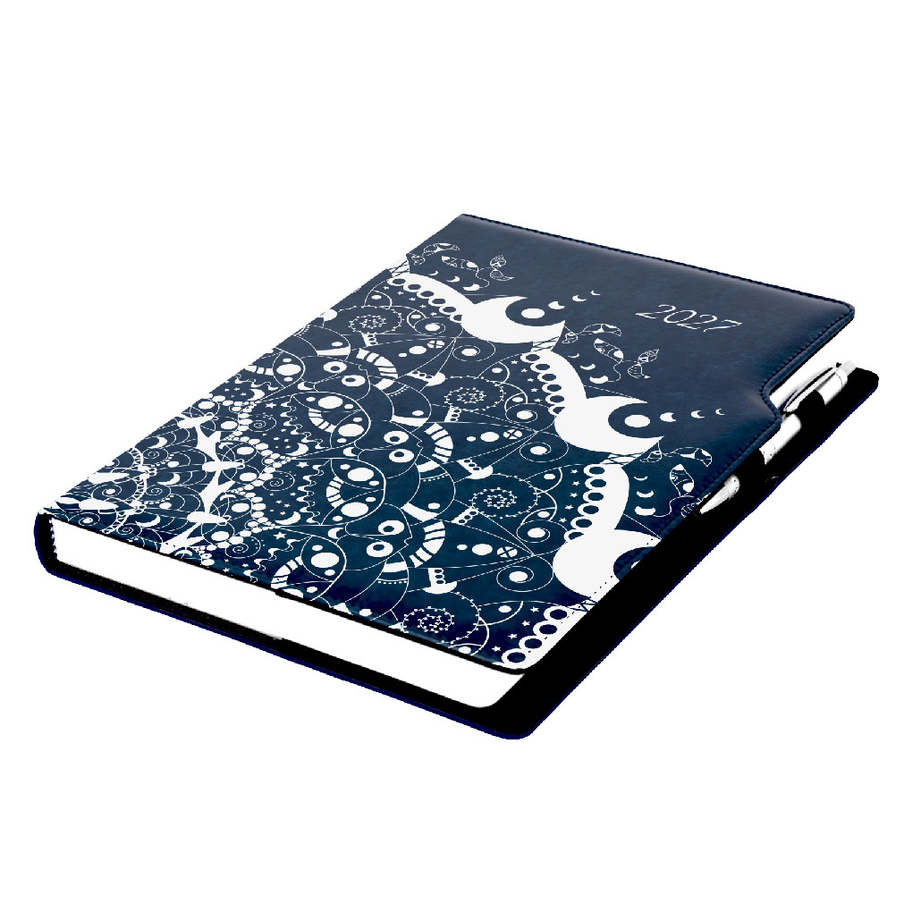 Kalendarz książkowy DESIGN dzienny A4 2027 - niebieski - ornament