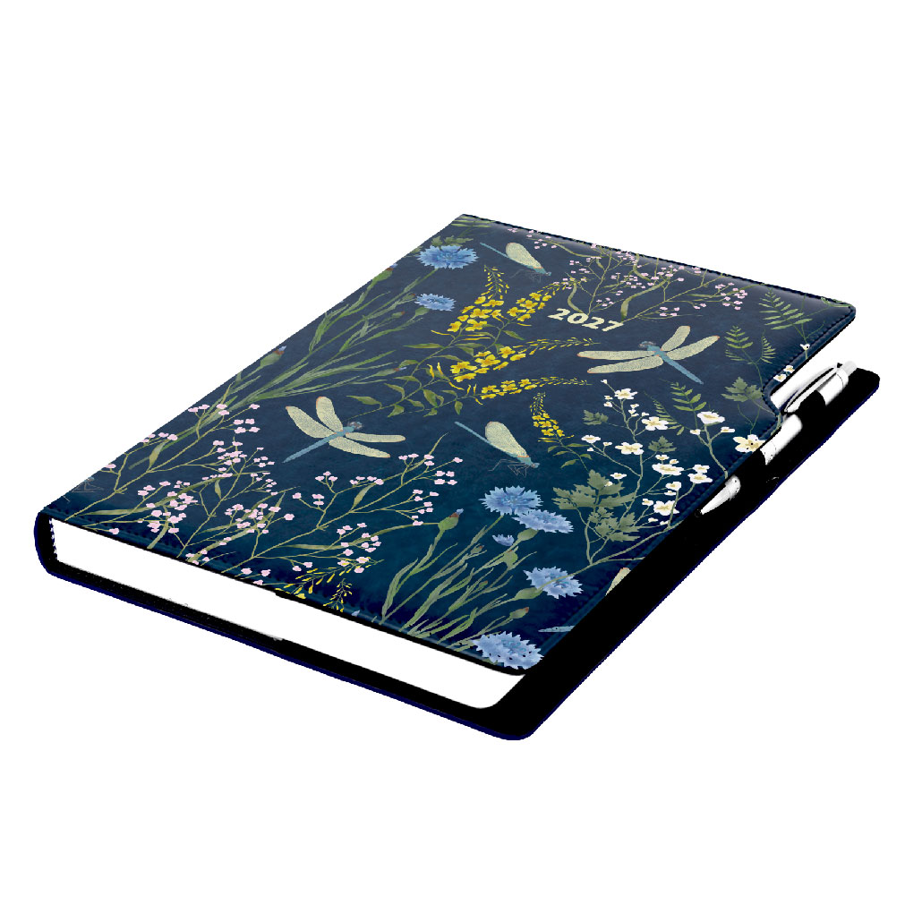 Kalendarz książkowy DESIGN dzienny A4 2027 - niebieski - ważki
