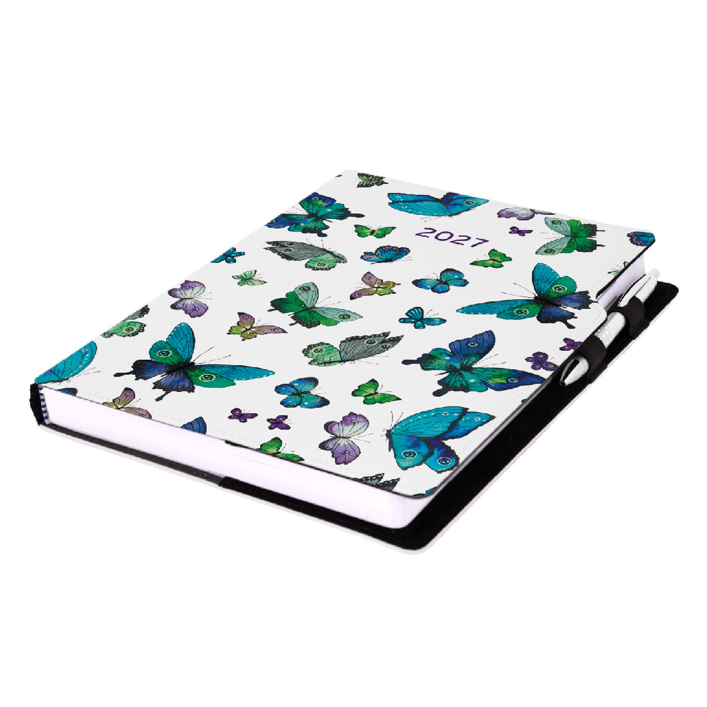 Kalendarz książkowy DESIGN dzienny A4 2027 - Niebieskie motyle