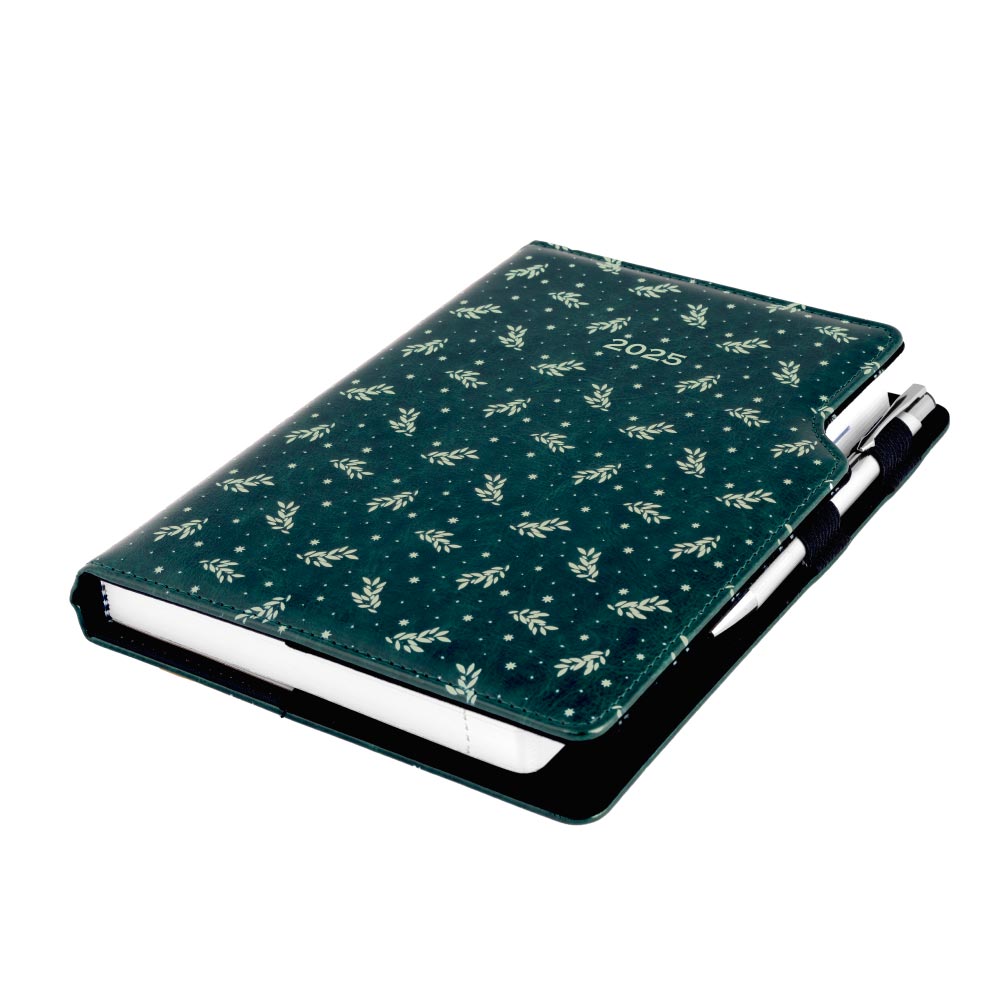 Kalendarz książkowy DESIGN dzienny A5 2025 polski - zielony - gałązki