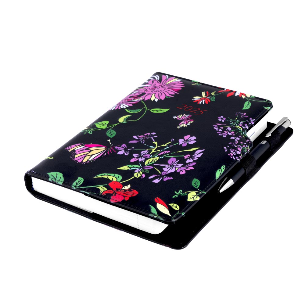Kalendarz książkowy DESIGN dzienny A5 2025 słowacki - czarny - kwiaty