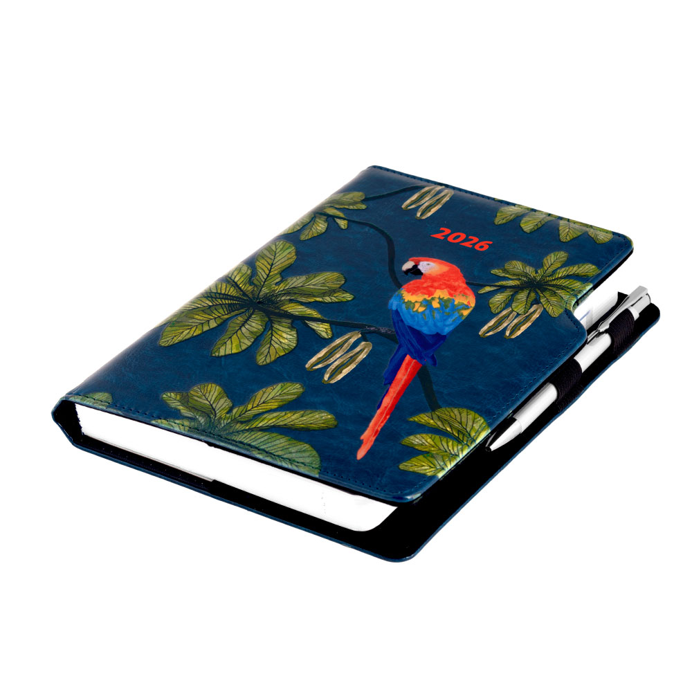 Kalendarz książkowy DESIGN dzienny A5 2026 czeski - granatowy - papuga