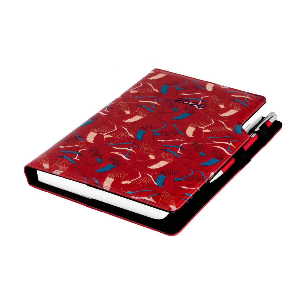 Kalendarz książkowy DESIGN dzienny A5 2026 polski - bordo - Żuraw
