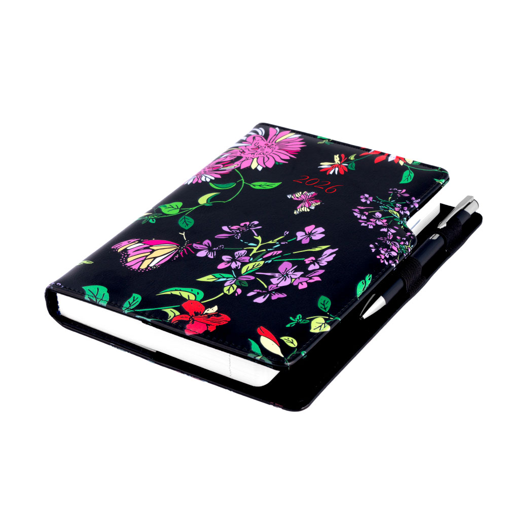 Kalendarz książkowy DESIGN dzienny A5 2026 słowacki - czarny - kwiaty