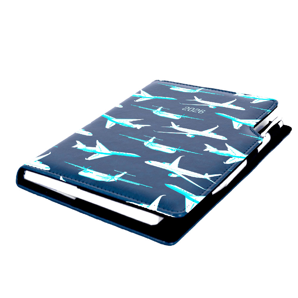 Kalendarz książkowy DESIGN dzienny A5 2026 slowacki - granatowy - Samoloty