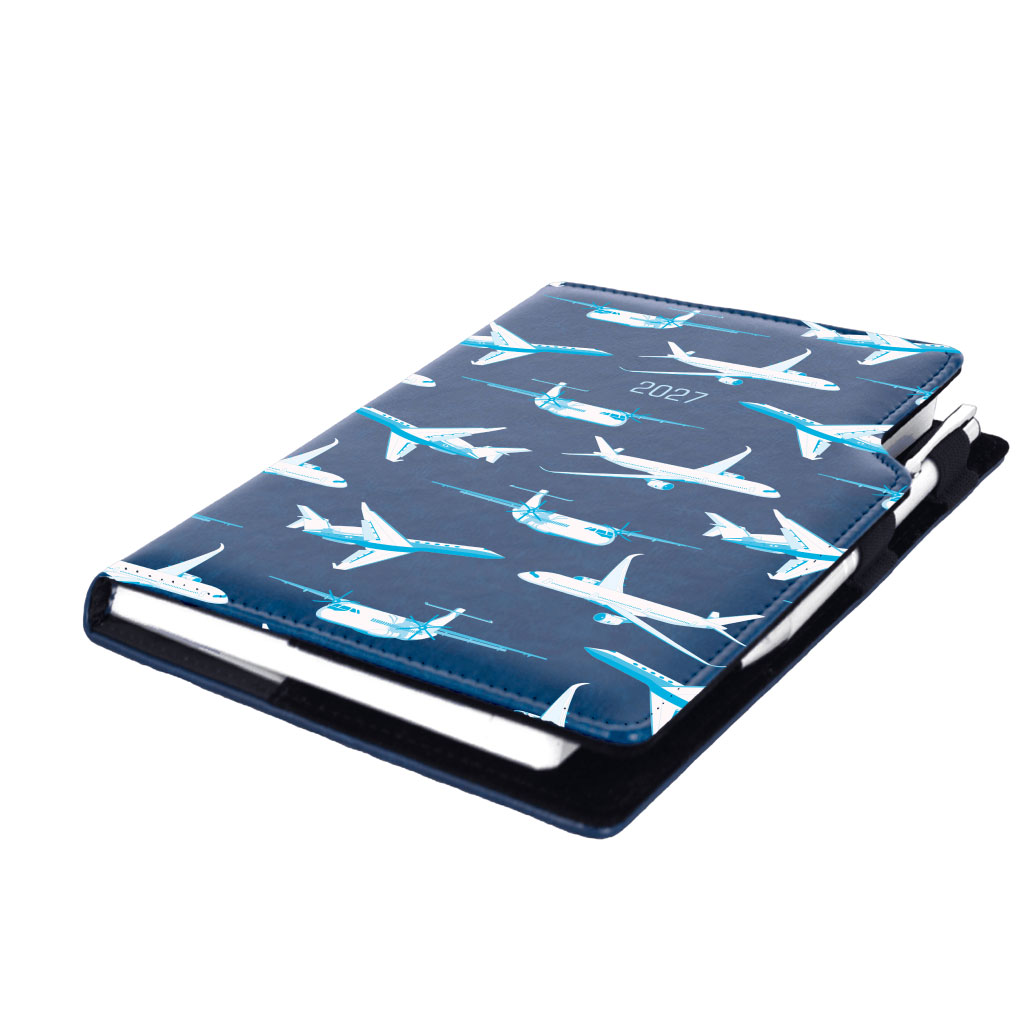 Kalendarz książkowy DESIGN dzienny A5 2027 slowacki - granatowy - Samoloty
