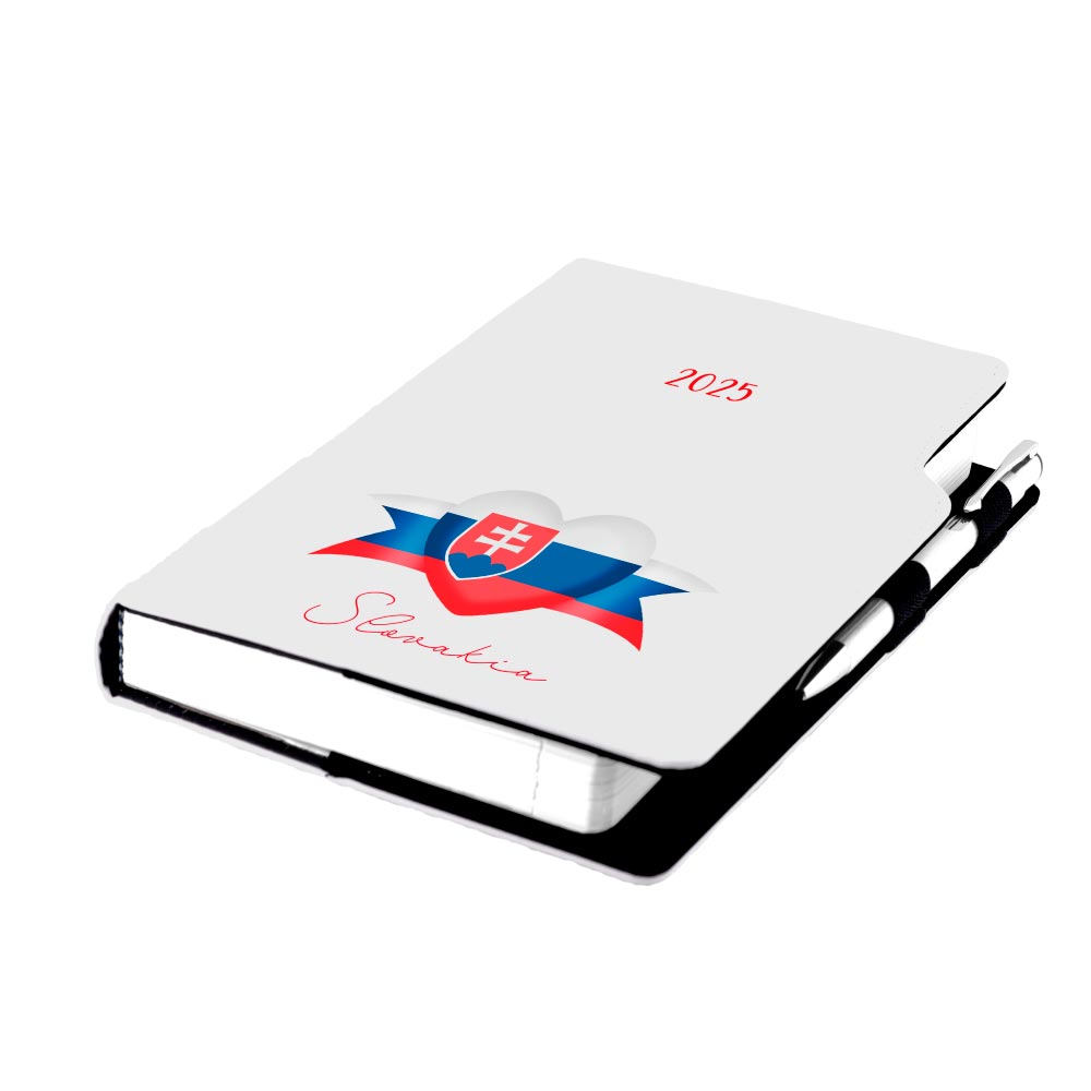 Kalendarz książkowy DESIGN dzienny B6 2025 polski - biały - Słowacja - flaga