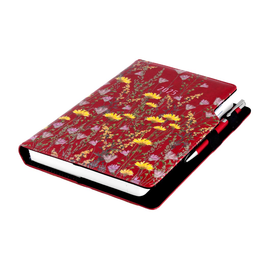 Kalendarz książkowy DESIGN dzienny B6 2025 polski - bordo - Łąka