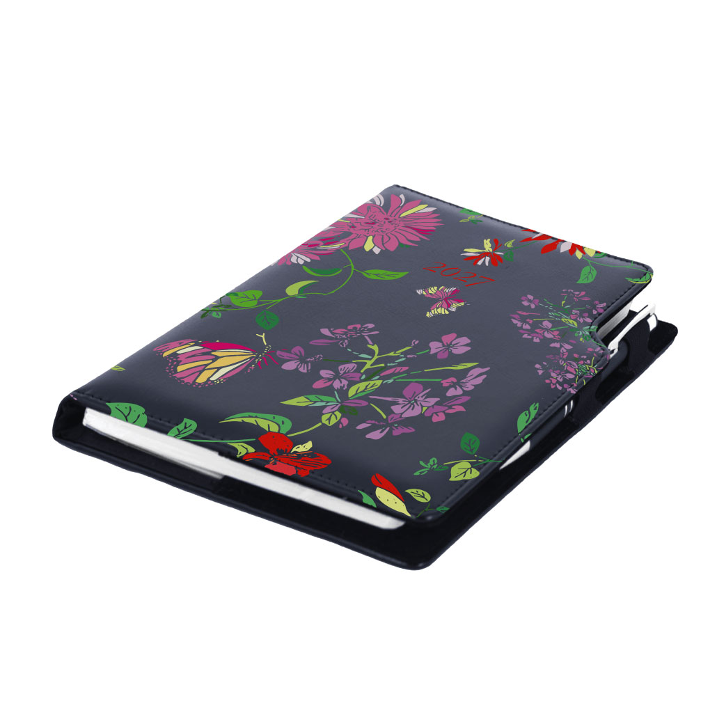 Kalendarz książkowy DESIGN dzienny B6 2027 polski - czarny - kwiaty