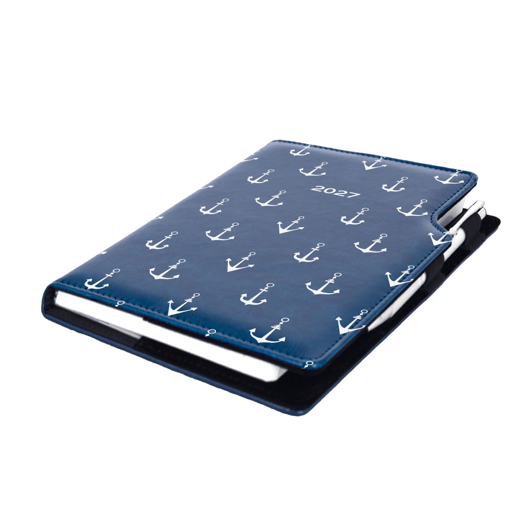 Kalendarz książkowy DESIGN dzienny B6 2027 polski - granatowy - marynarski- kotwice