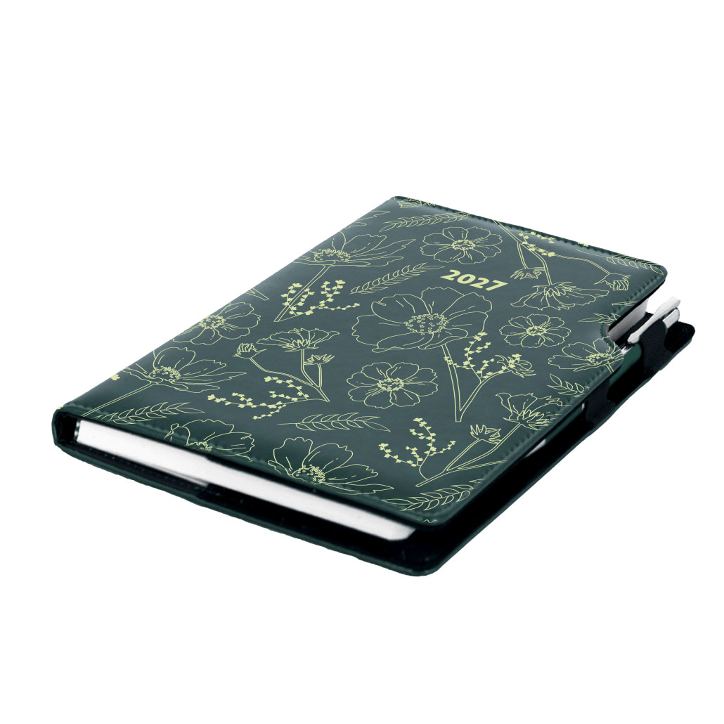 Kalendarz książkowy DESIGN dzienny B6 2027 polski - zielony - kwiatki