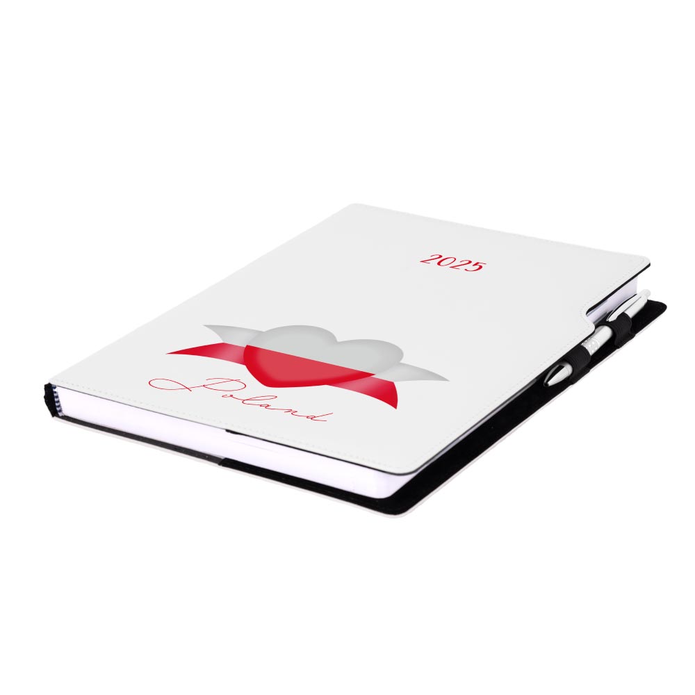 Kalendarz książkowy DESIGN tygodniowy A4 2025 - biały - Polska - flaga