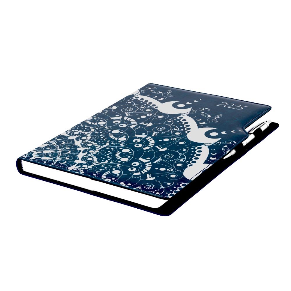 Kalendarz książkowy DESIGN tygodniowy A4 2025 polski - granatowy - ornament