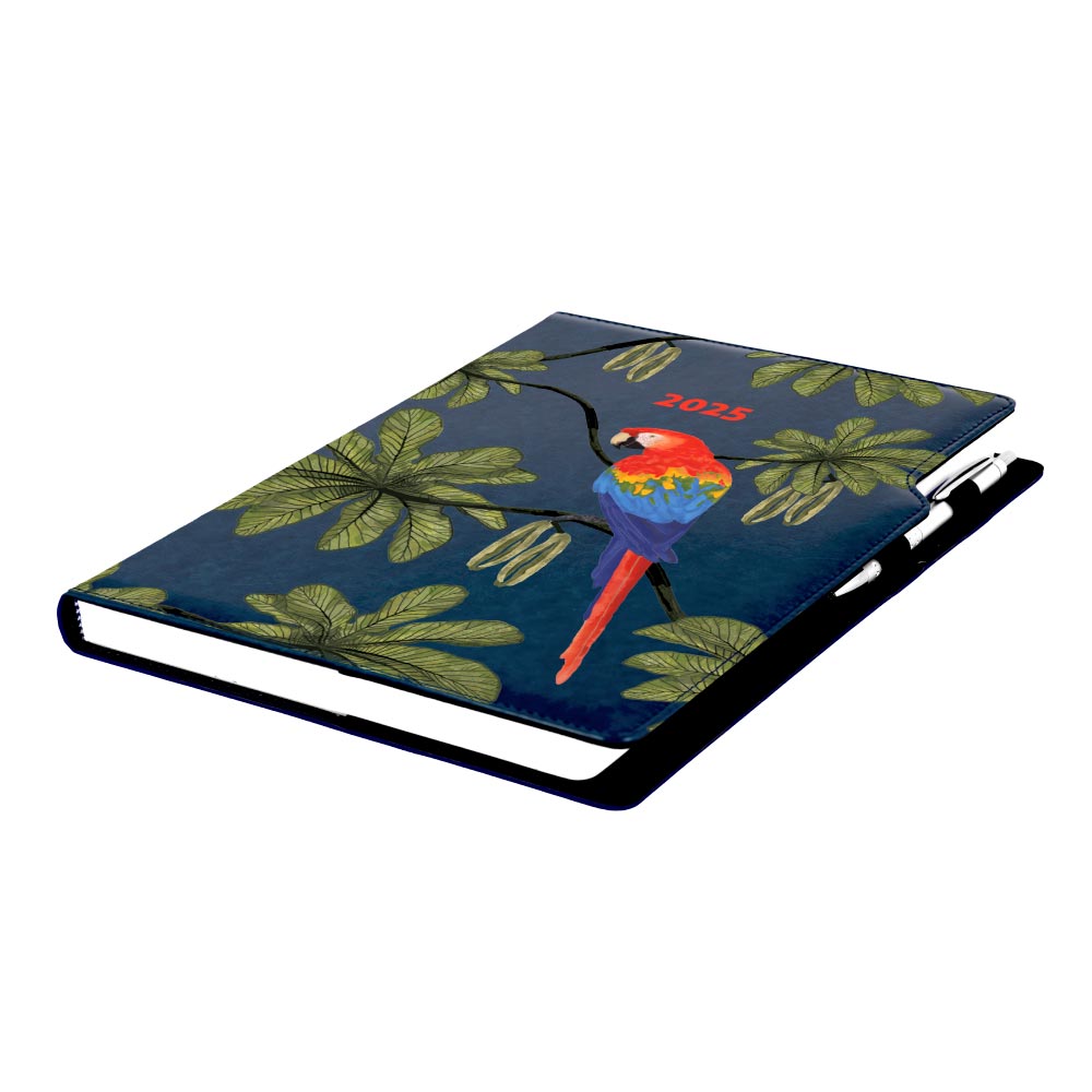 Kalendarz książkowy DESIGN tygodniowy A4 2025 polski - granatowy - papuga