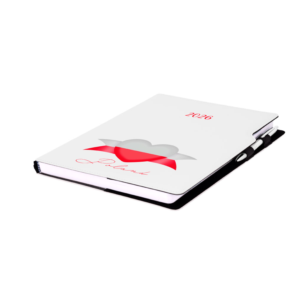 Kalendarz książkowy DESIGN tygodniowy A4 2026 - biały - Polska - flaga