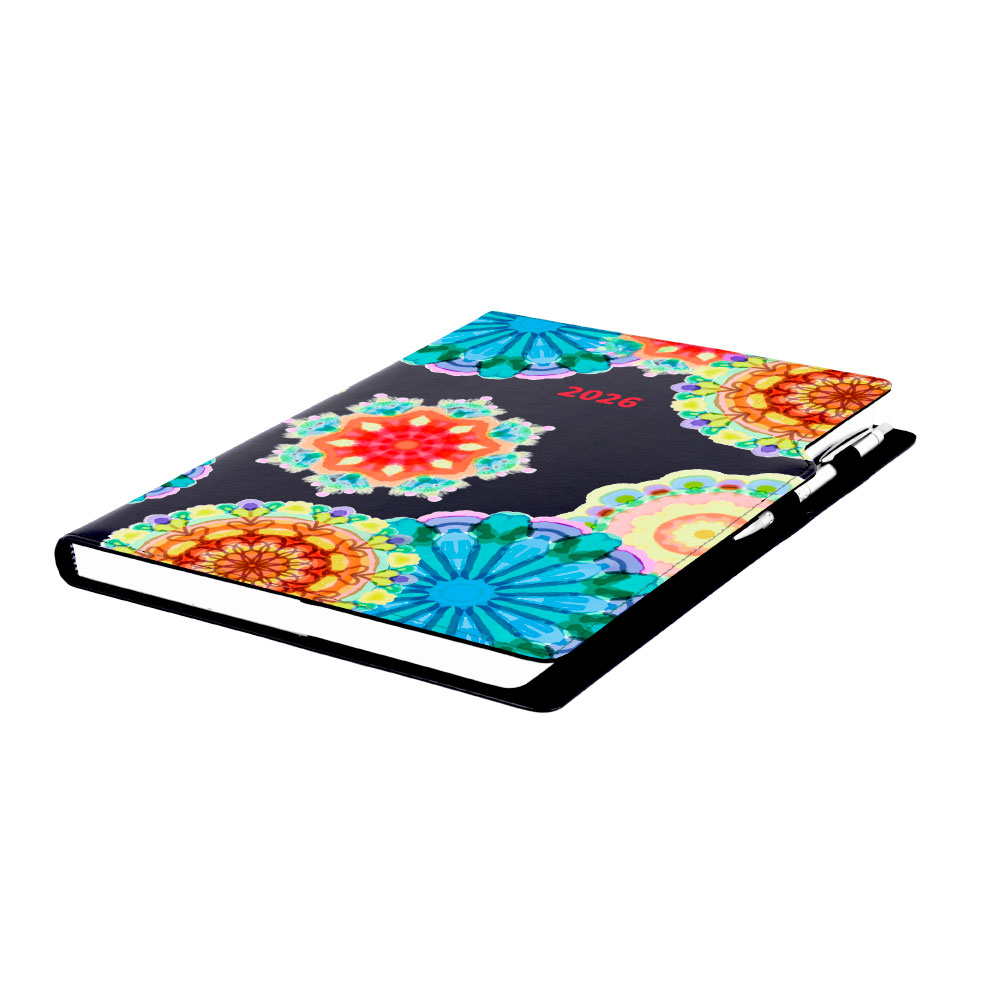 Kalendarz książkowy DESIGN tygodniowy A4 2026 - czarny - kalejdoskop