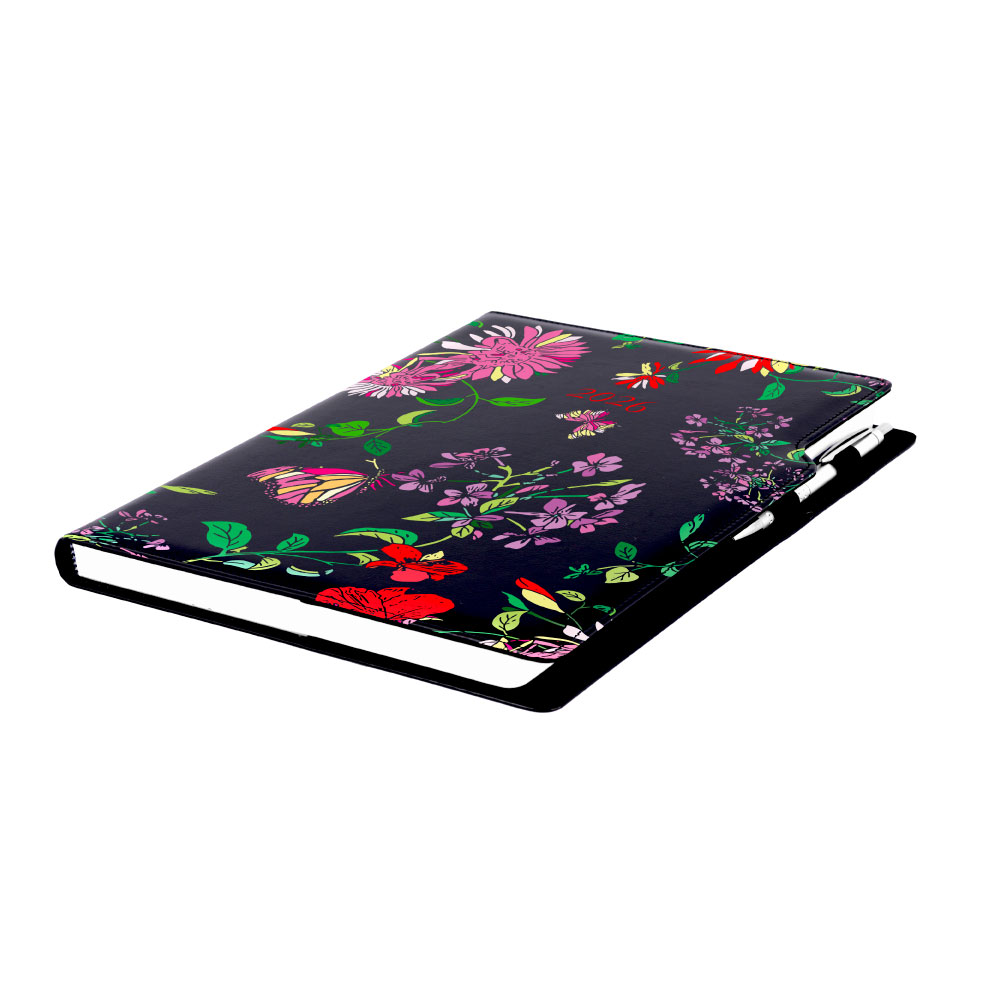 Kalendarz książkowy DESIGN tygodniowy A4 2026 - czarny - kwiaty