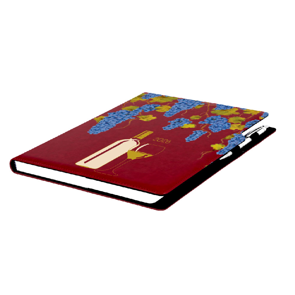 Kalendarz książkowy DESIGN tygodniowy A4 2026 czeski - bordo - Wino