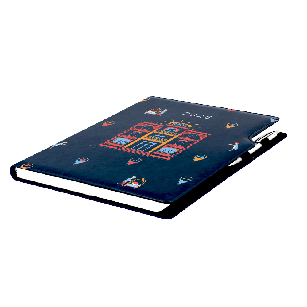 Kalendarz książkowy DESIGN tygodniowy A4 2026 czeski - granatowy - Hotel