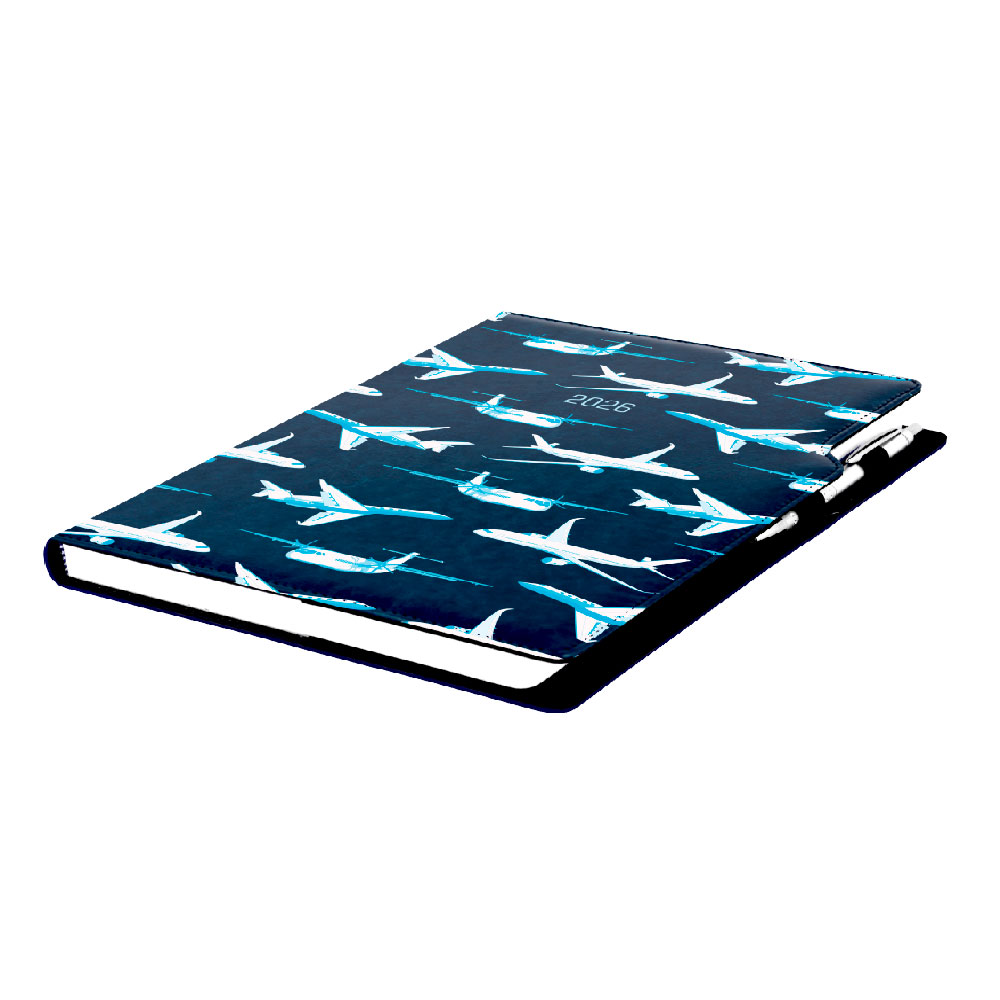 Kalendarz książkowy DESIGN tygodniowy A4 2026 czeski - granatowy - Samoloty