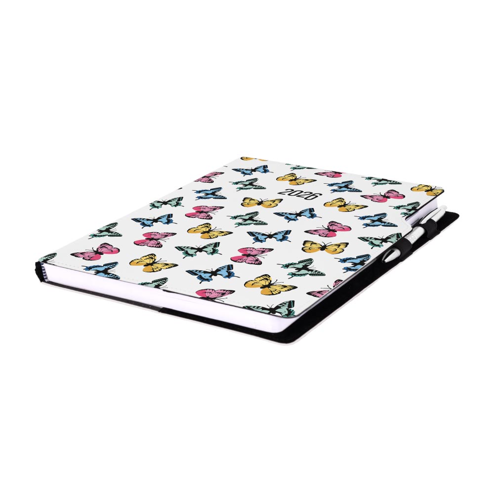 Kalendarz książkowy DESIGN tygodniowy A4 2026 - Kolorowe motyle